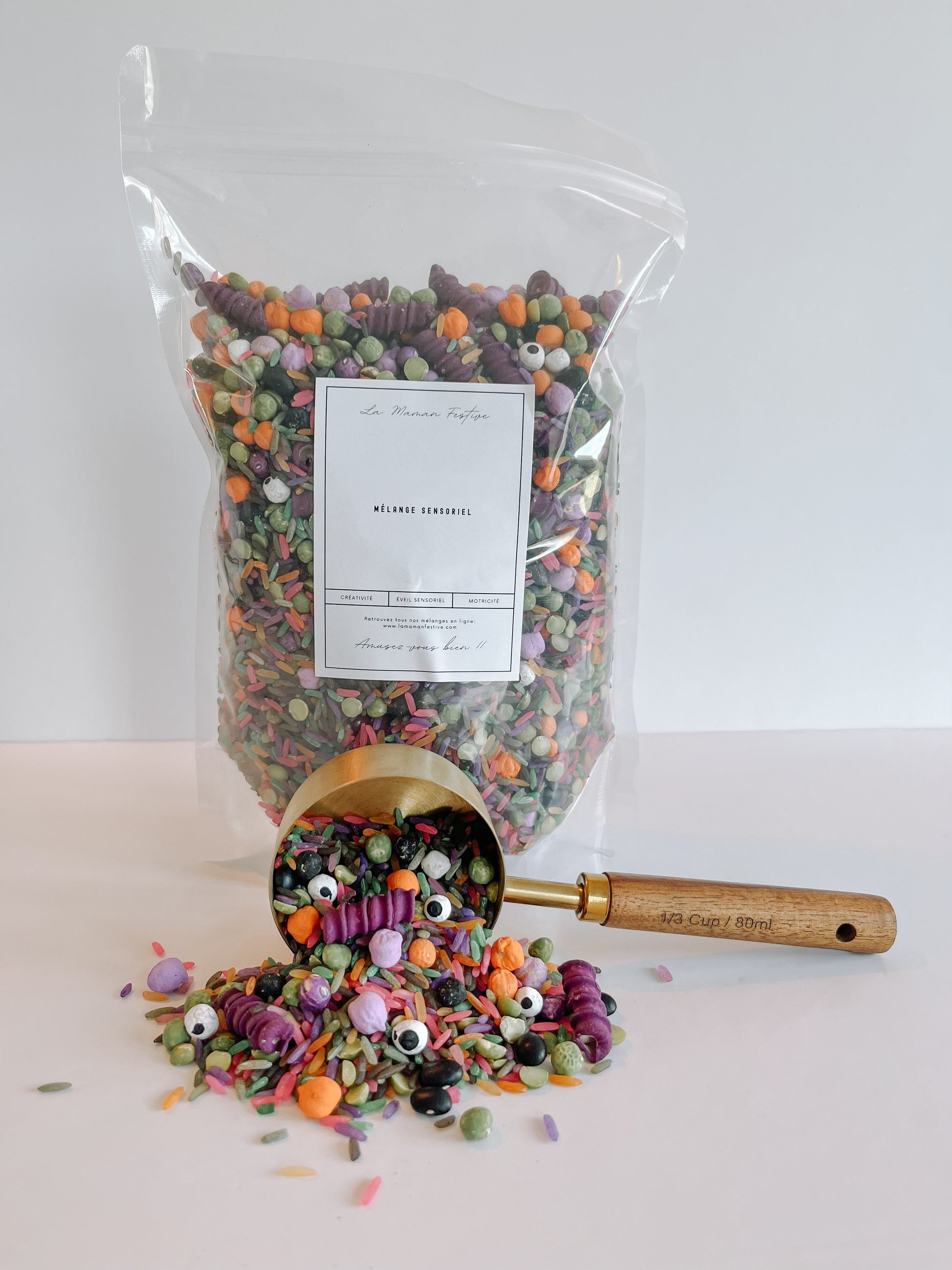 La Maman Festive offre une large gamme de mélanges sensoriels pour le plus grand plaisir de vos tout-petits. Nos mélanges sont toujours en format de quatre (4) tasses puisque c'est la quantité requise pour remplir un bac sensoriel standard.